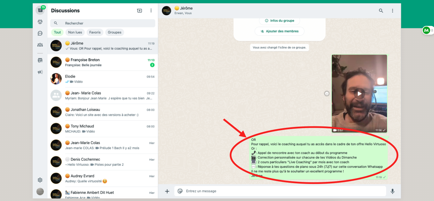 Il est impératif que le numéro de téléphone associé à ton compte Hello Virtuoso soit identique à celui que tu utilises sur Whatsapp. Cette synchronisation est essentielle pour que ton coach puisse te contacter.