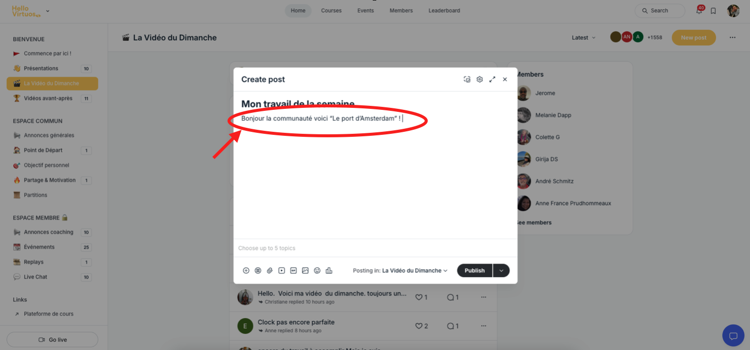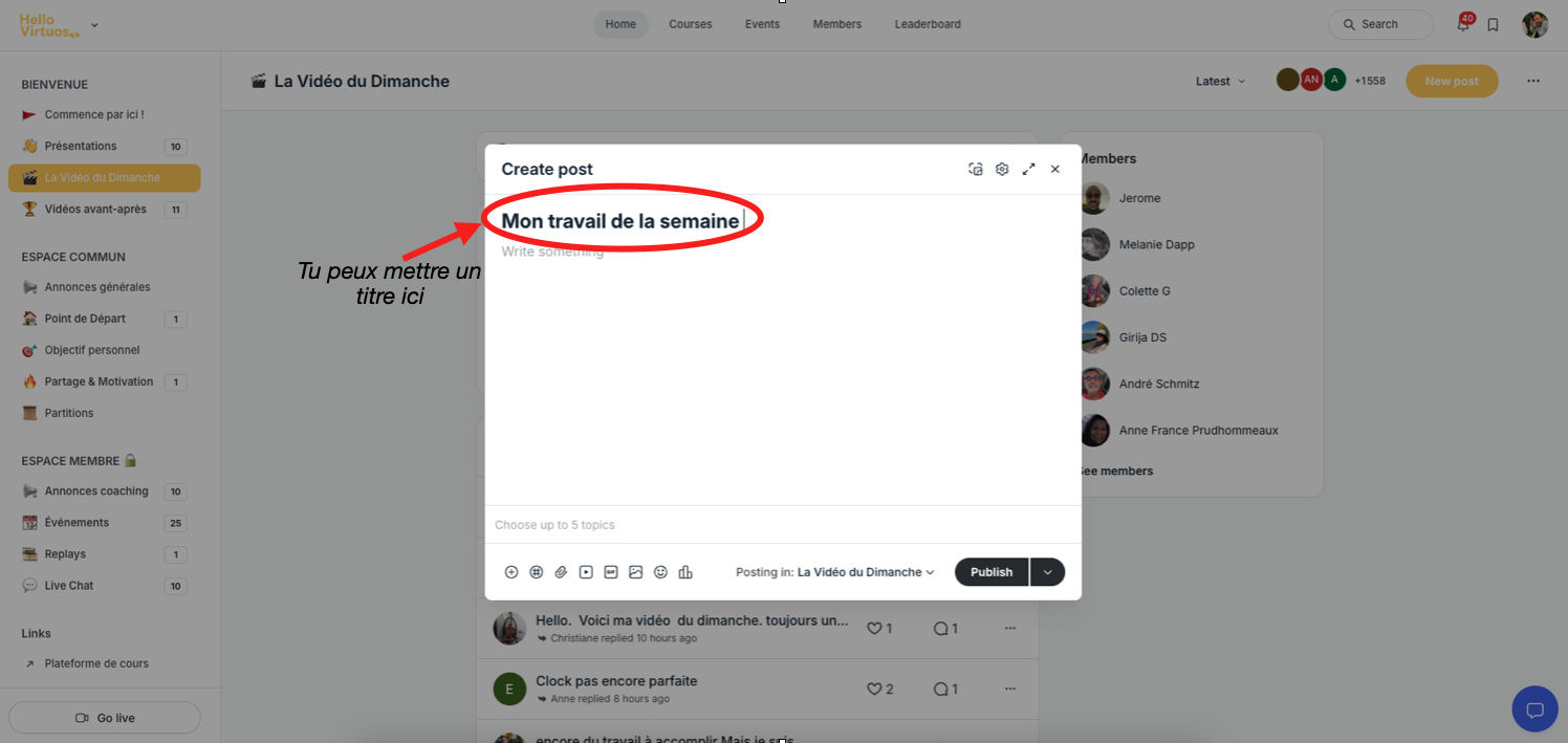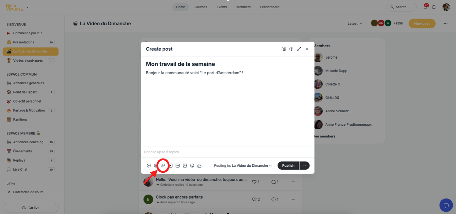 Chaque semaine, tu as l'opportunité de partager tes moments forts, tes créations ou tes prestations en vidéo avec la communauté. Voici comment publier ta "Vidéo du Dimanche" en quelques étapes simples.