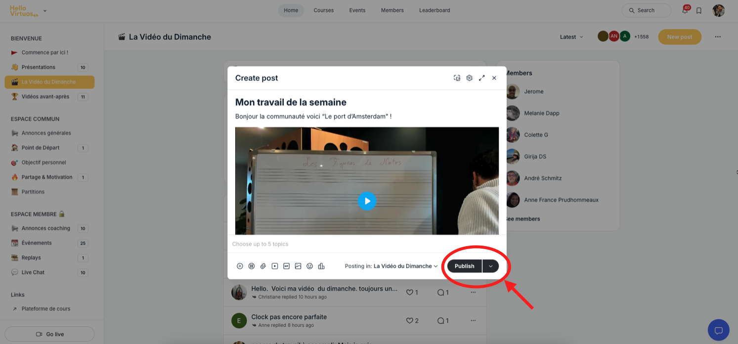 Il ne te reste plus qu'à cliquer sur "Publish" en bas à droite de la fenêtre pour partager ta vidéo point de départ avec la communauté.