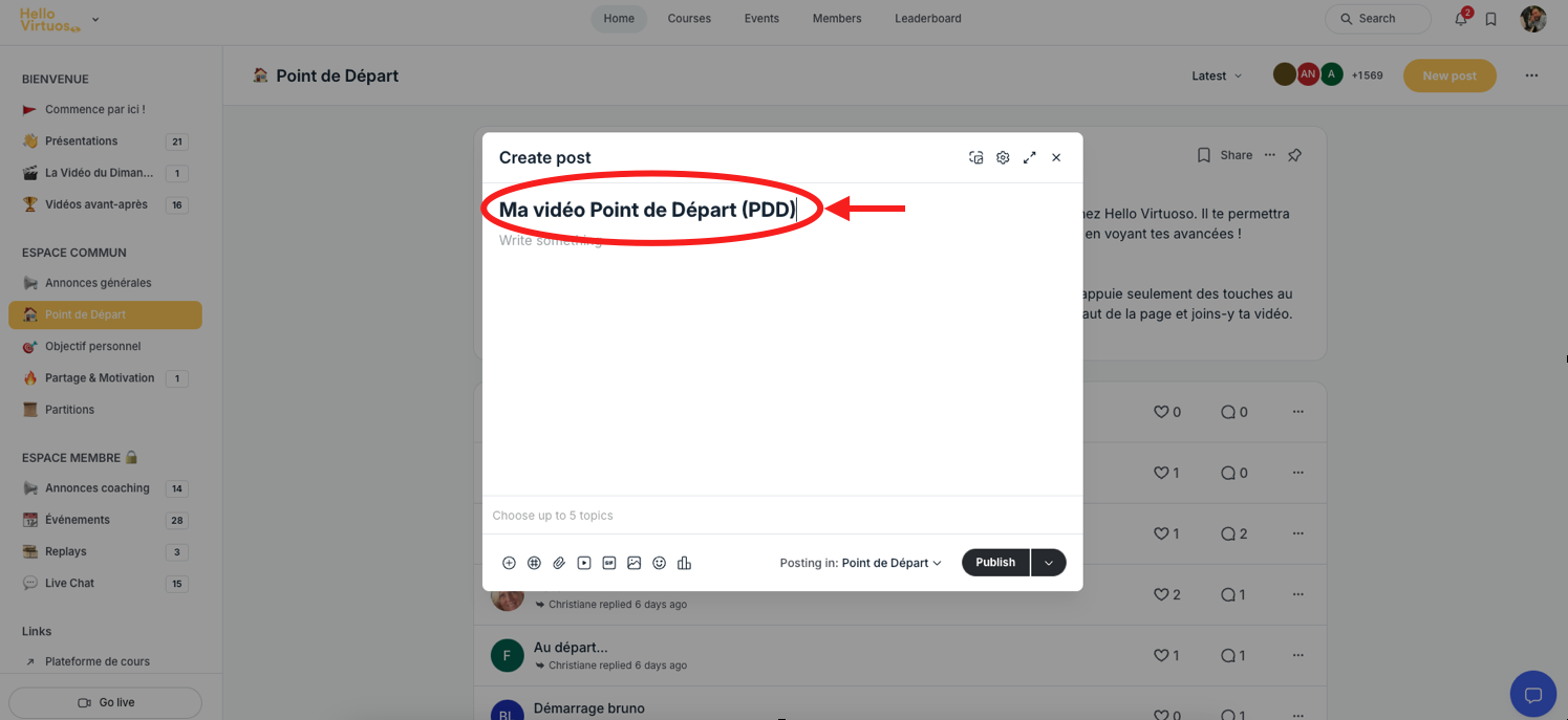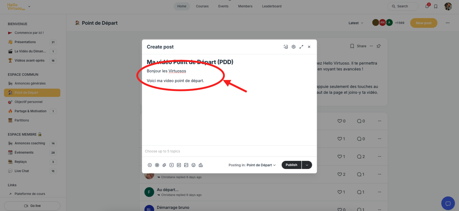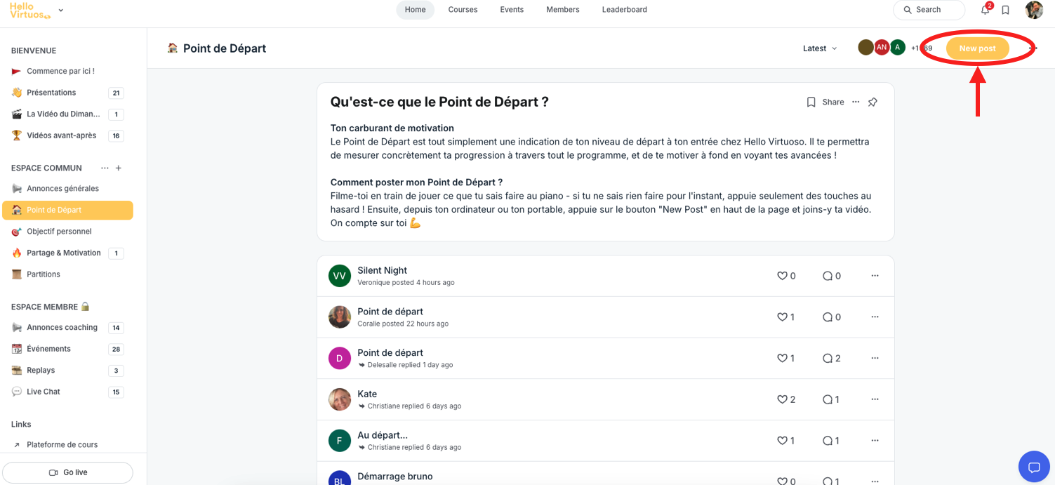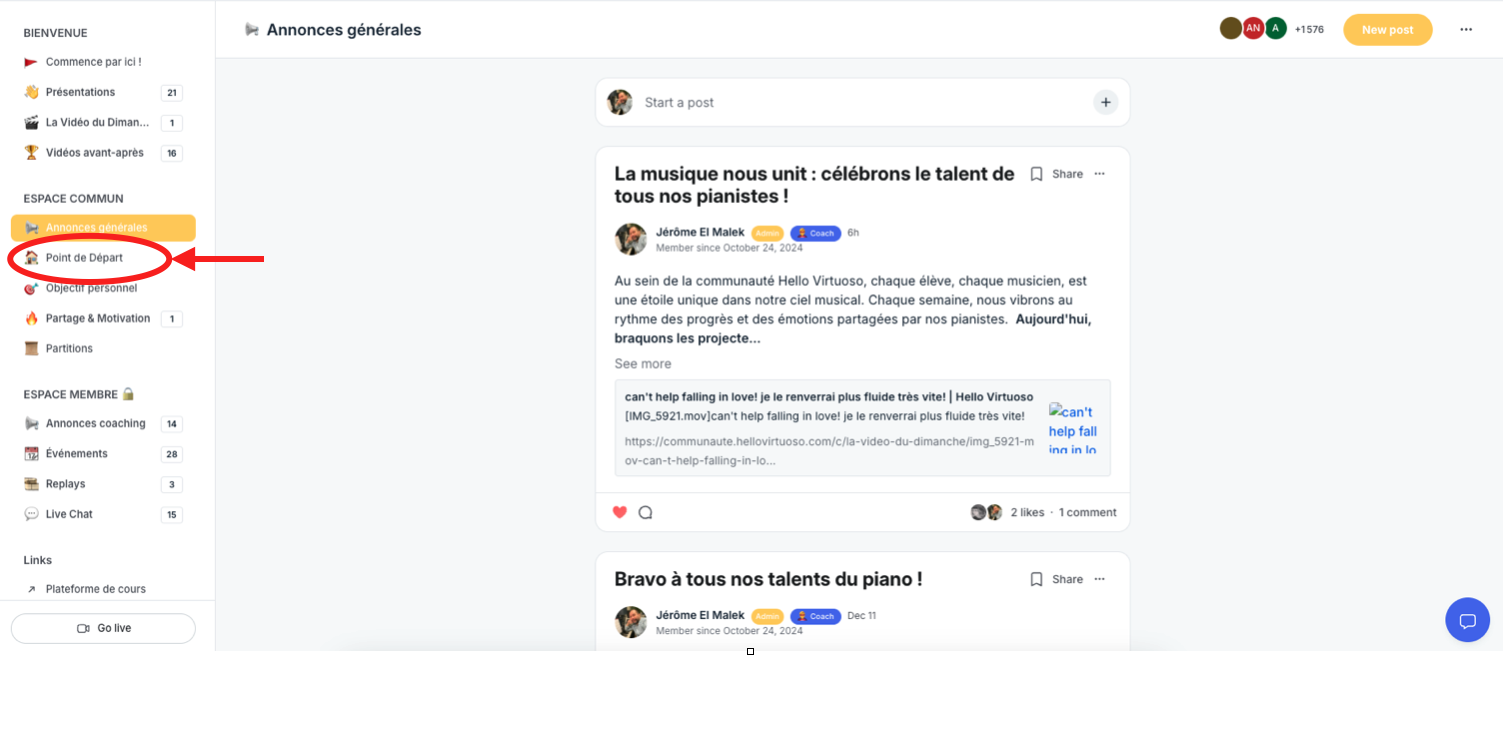 Connecte-toi à ton compte communauté. et rends-toi sur l'espace dédié au "Point de Départ".
