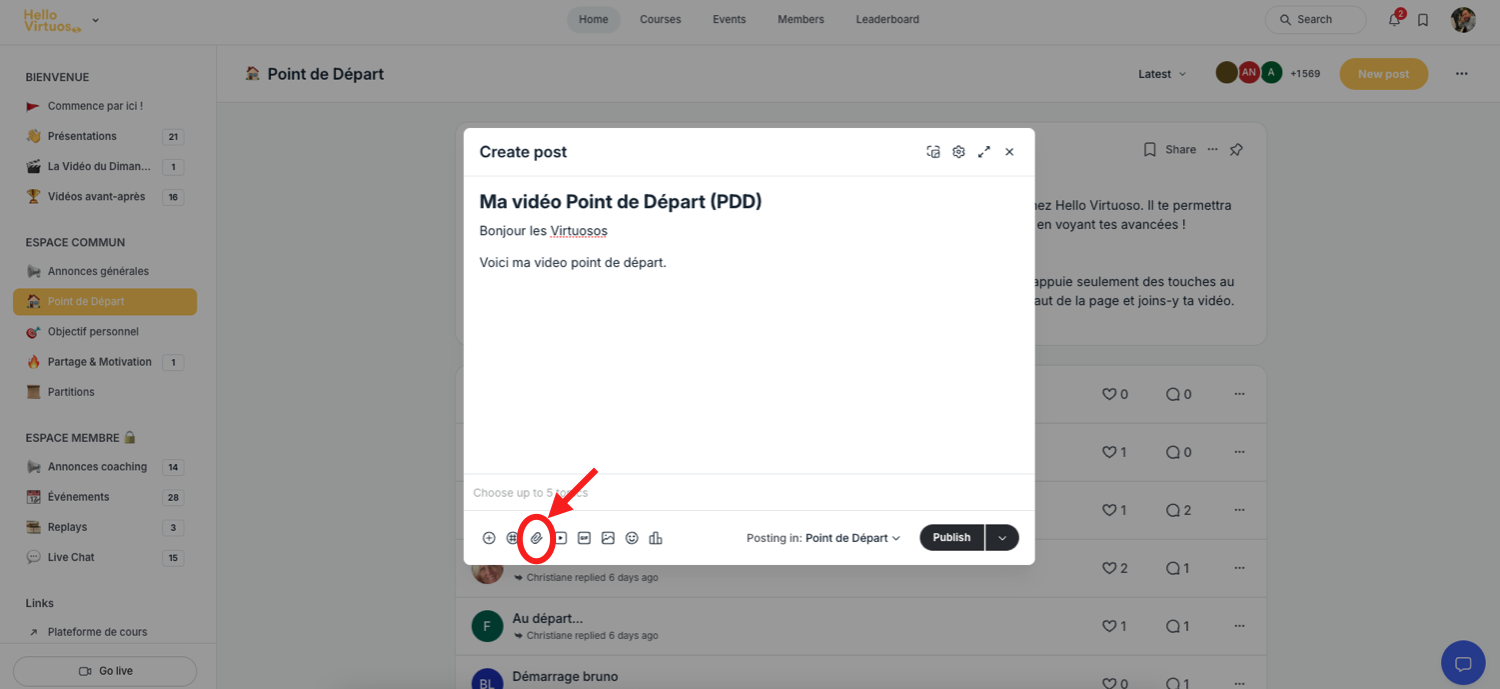 Afin de te proposer un accompagnement personnalisé sur Hello Virtuoso, nous t'invitons à partager ton Point de Départ. Il s'agit d'une courte vidéo qui permettra à ton coach de mieux cerner tes compétences pianistiques.