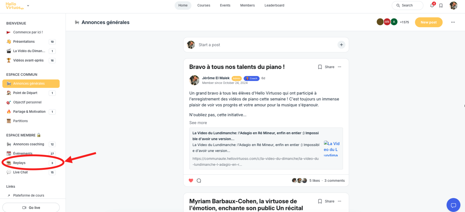 Une fois authentifié, accède à l'espace Replays en cliquant sur ce lien soit en cliquant sur "Replays" dans le menu à gauche de ton écran.