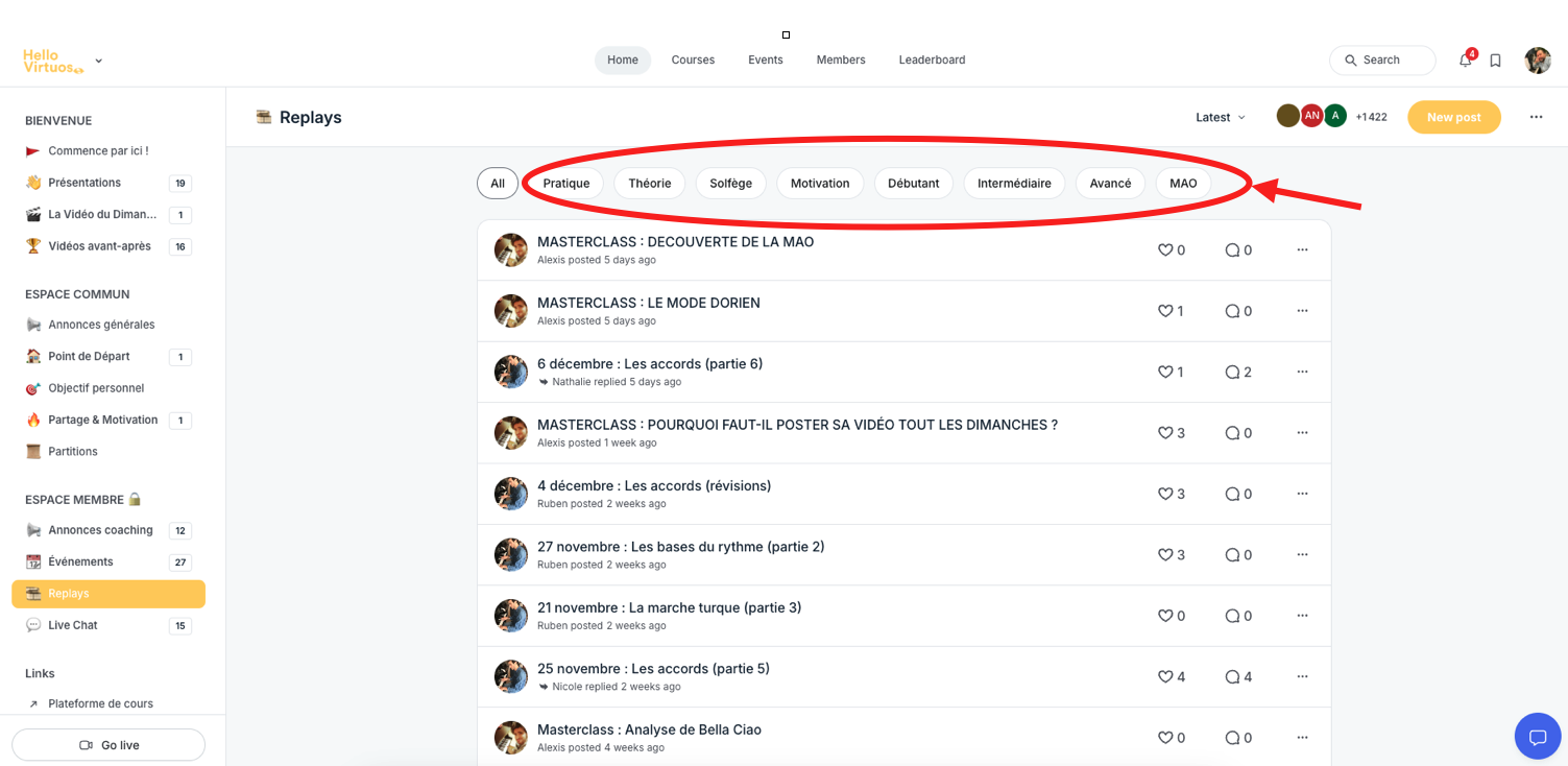 Les Masterclass sont classées par thème que tu trouveras en haut de la page, cela te permet d'affiner ta recherche.
