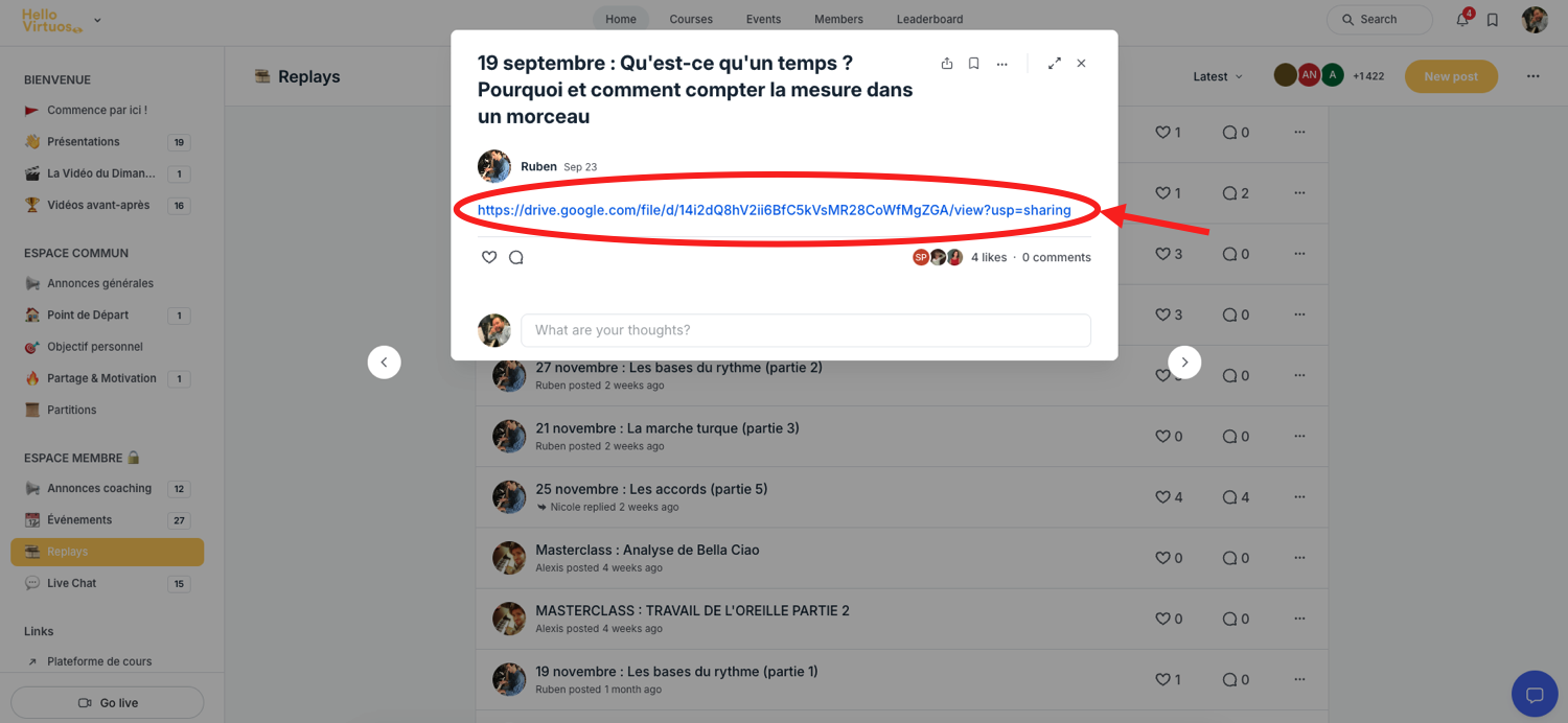 Une fois que tu a cliqué sur la vidéo que tu souhaites visionner, une fenêtre contenant un lien s'ouvre, clique sur ce dernier pour lancer le replay.