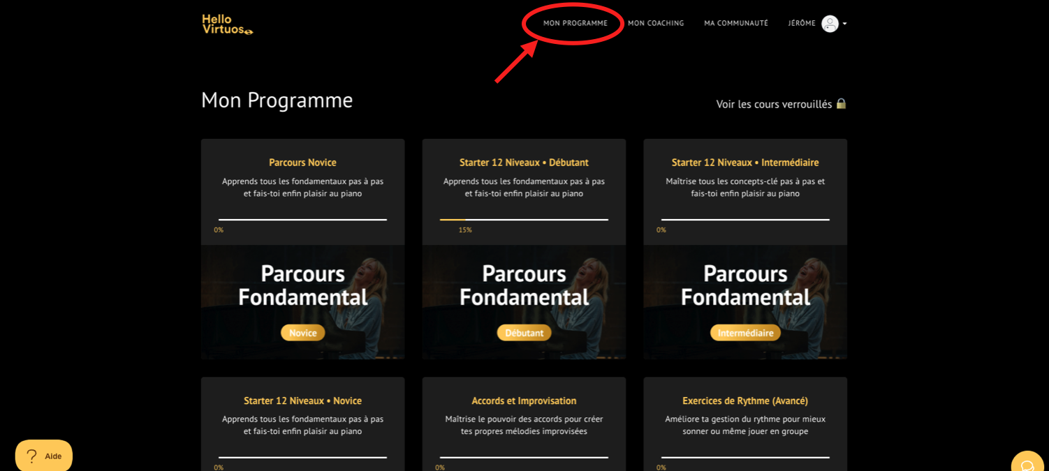 Pour accéder à tes vidéos de cours, c'est tout simple, il te suffit de cliquer sur l'onglet "Mon Programme" situé dans le menu principal.
