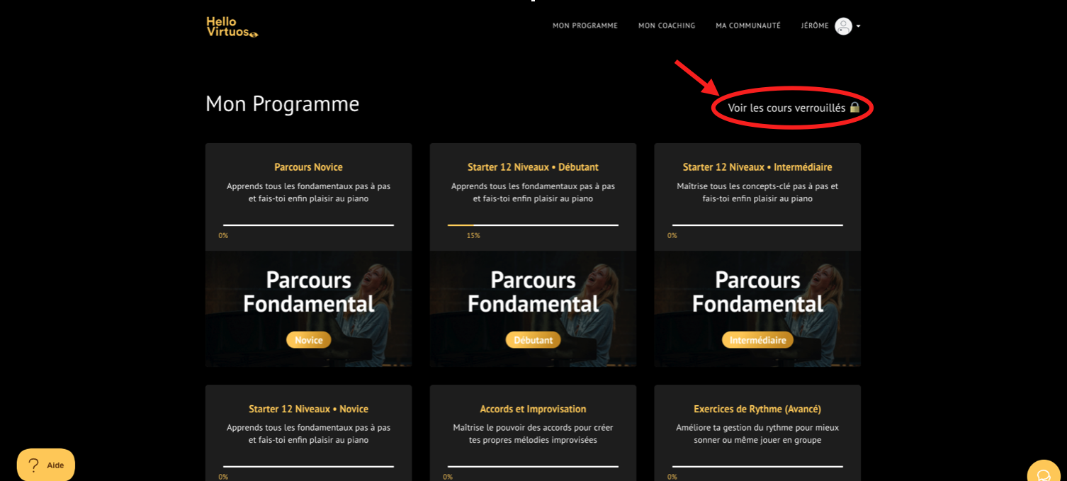 Pour anticiper les prochaines étapes de ta formation et organiser tes sessions d'apprentissage de manière optimale, clique sur "Voir les cours verrouillés".