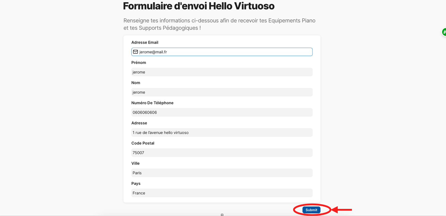 Clique sur "Submit" une fois complété.